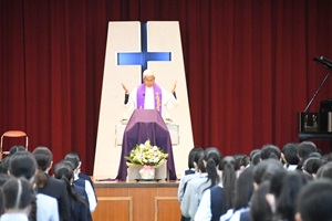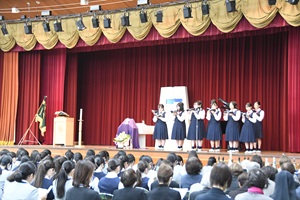 カトリック教会では11月が死者の月とされており、毎年この時期に、全校生徒が亡くなられた方々を思うとともに、亡くなられた方々の遺族の方に思いを馳せて、祈りを捧げます。