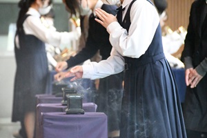 10月29日(水)、学院追悼式を行い、この1年の内にご逝去された旧職員、卒業生、教職員や生徒の関係者48名を偲びました。
