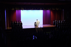 午前は全校生徒で鑑賞、午後は来賓、保護者の方々、小中学生など300人近くの方に来場していただきました。