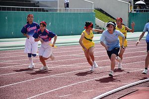 リレー競技では教員チームも出場し、生徒との真剣勝負に競技場は多いに盛り上がりました。
